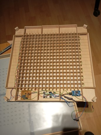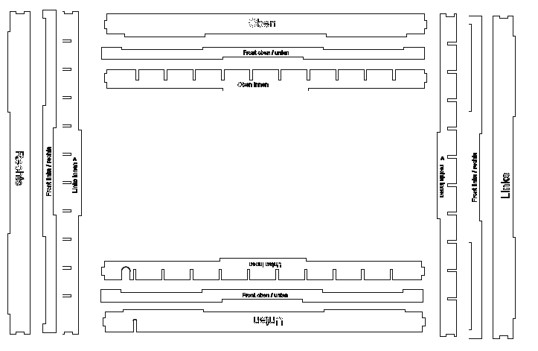 - Alle Holzteile wurden per Lasercutter gefertigt, darunter die Frontplatten, Rahmen und Lichtgitter – nach den Entwürfen von Thomas.