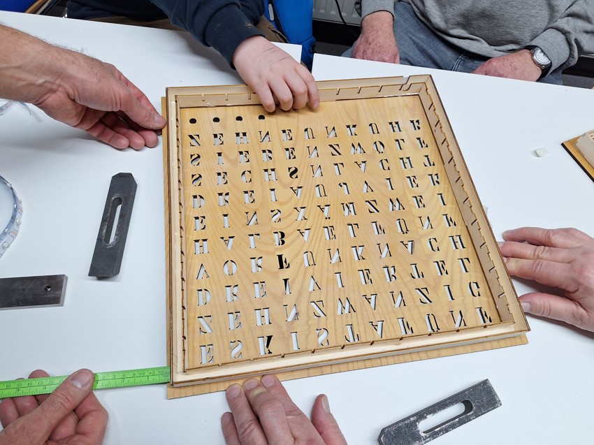 Alles begann mit einer simplen Notiz in unserer Jahresplanung: „Workshop: Uhr bauen (Buchstaben-Uhr)“. Ein Vereinsmitglied hatte vor einiger Zeit bereits eine solche Uhr gebaut – sie zeigte die Uhrzeit in Worten an, ein echter Hingucker! Doch schnell war klar: Wenn wir daraus einen Workshop für mehrere Teilnehmende machen wollten, brauchten wir ein komplett neues, kostengünstiges und praxistaugliches Konzept.